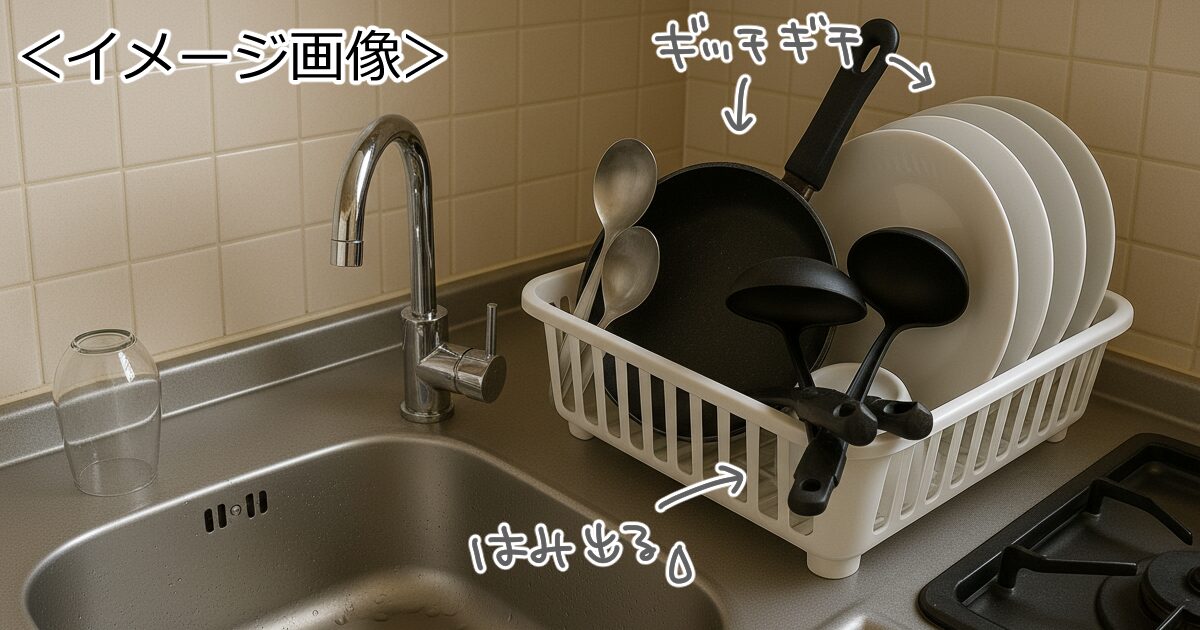 シンクも広くないし、水切りカゴには全部入らないよ…